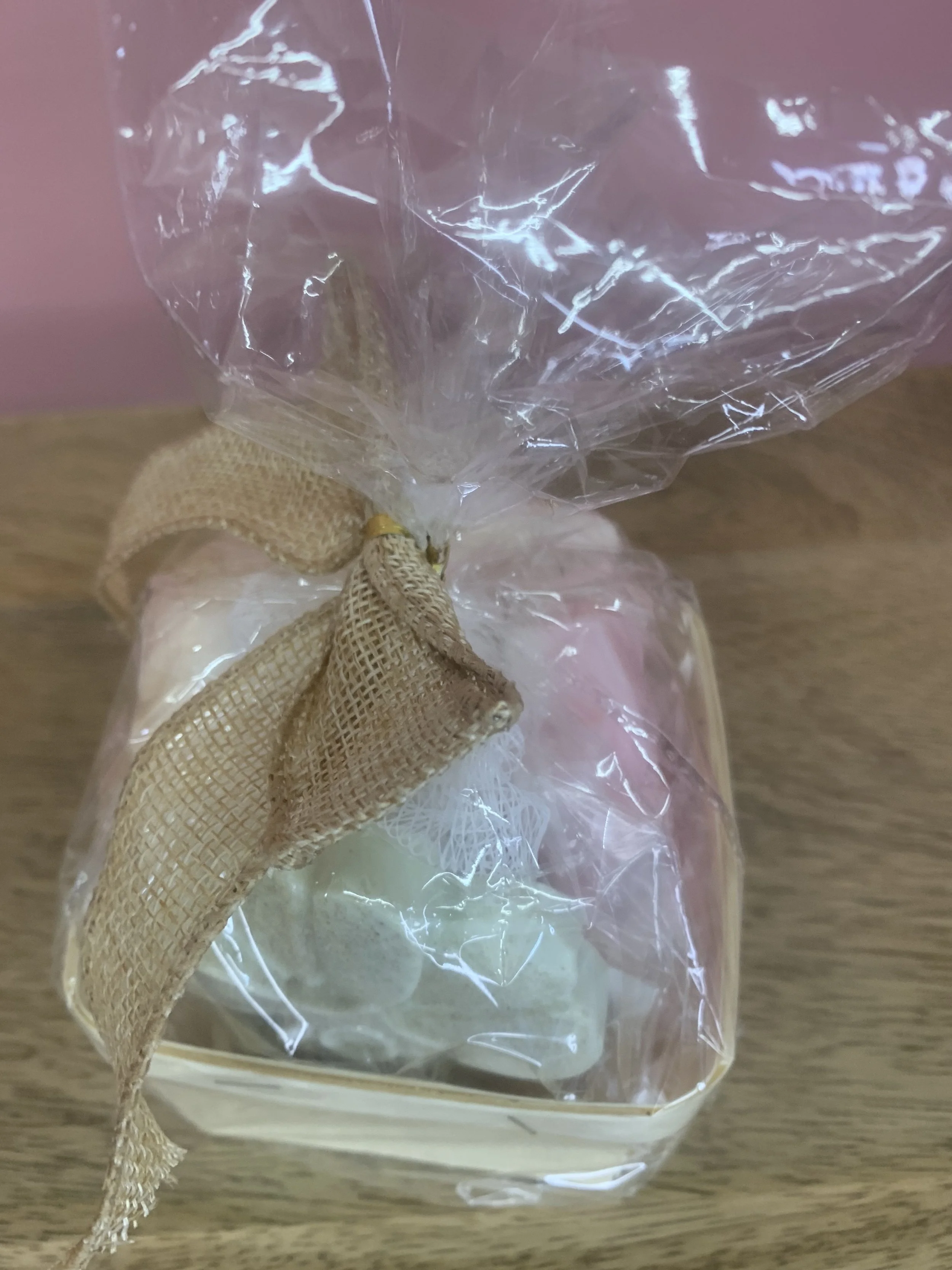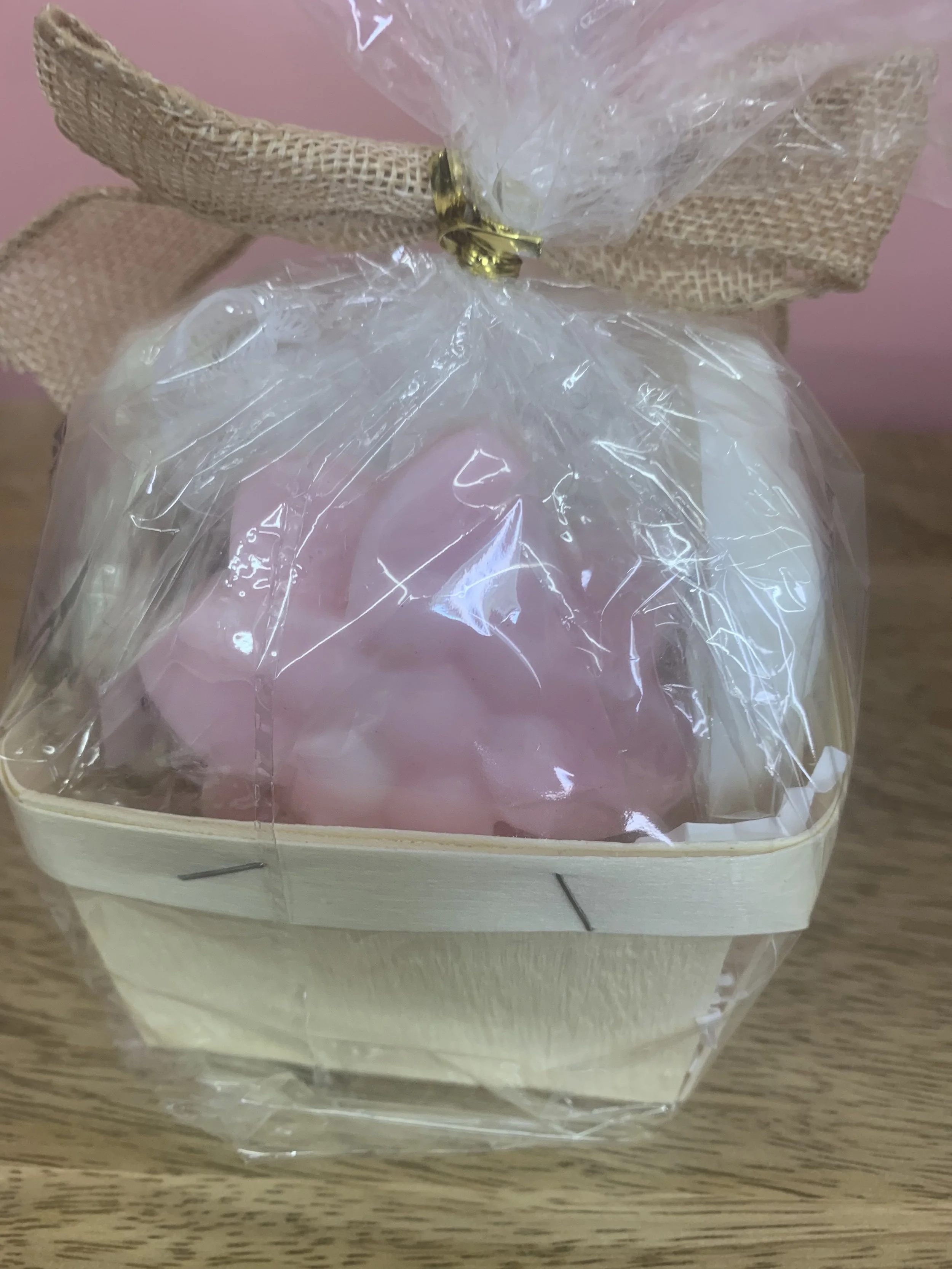 4 3oz flower-shaped lightly scented soaps. Customize your basket! You can choose a single scent or make a selection that best fits your needs. oatmeal-based soap with coconut oil, almond oil, and grape seed oil.